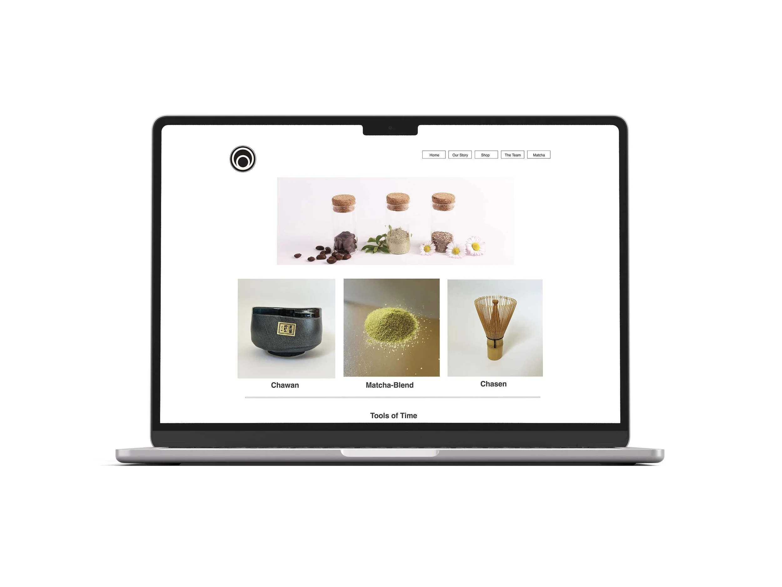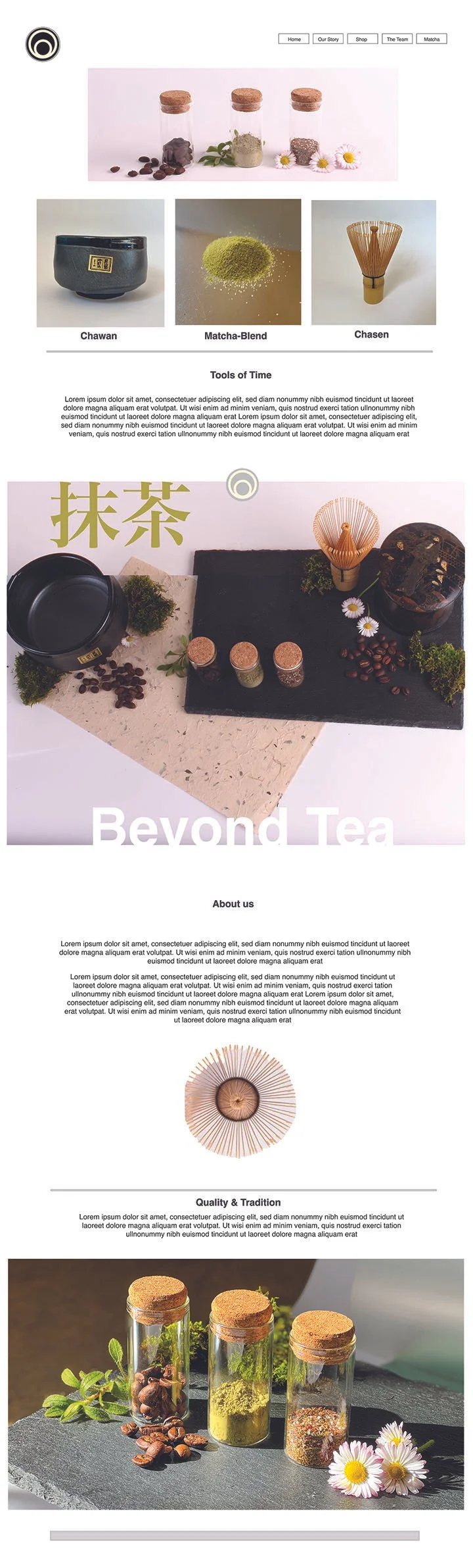 The seemingly simple logo for the tea shop holds deep history as it is done in the ‘Mon’ or family crest style - a round emblem, slightly yellowed, as if painted on antiqued pre-war chirimen silk.