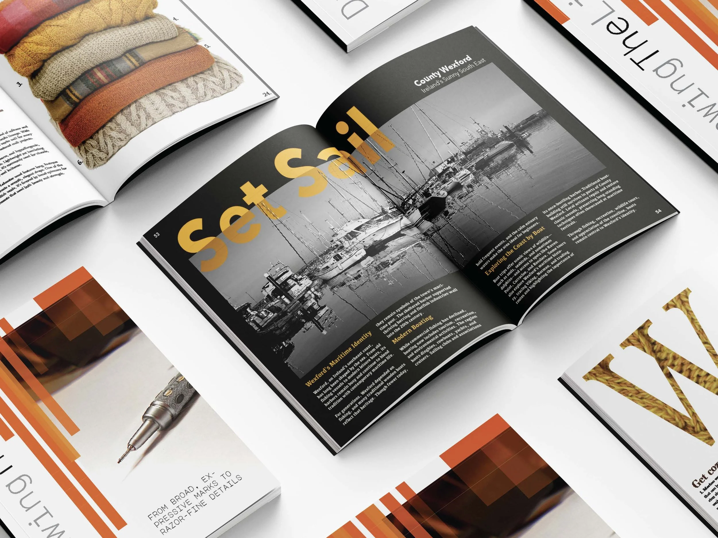 These magazine spreads show a diverse range of layout knowledge and application.